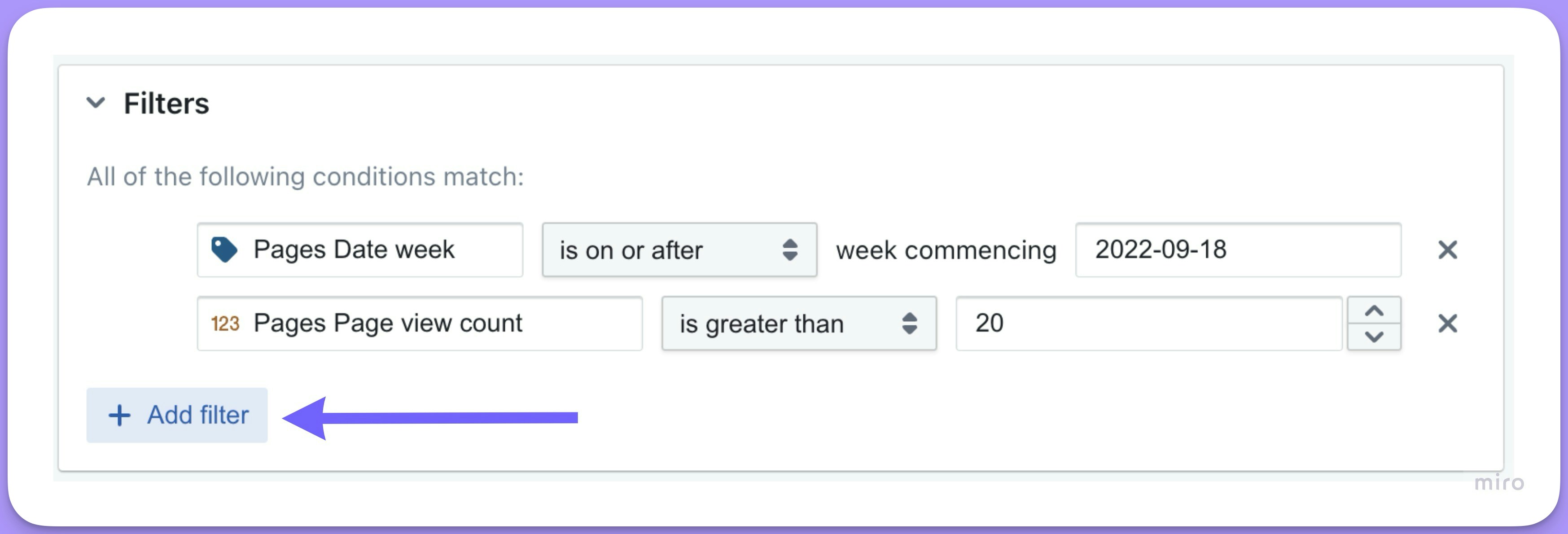 If you add multiple filters, you can choose to have ALL or ANY of the conditions match