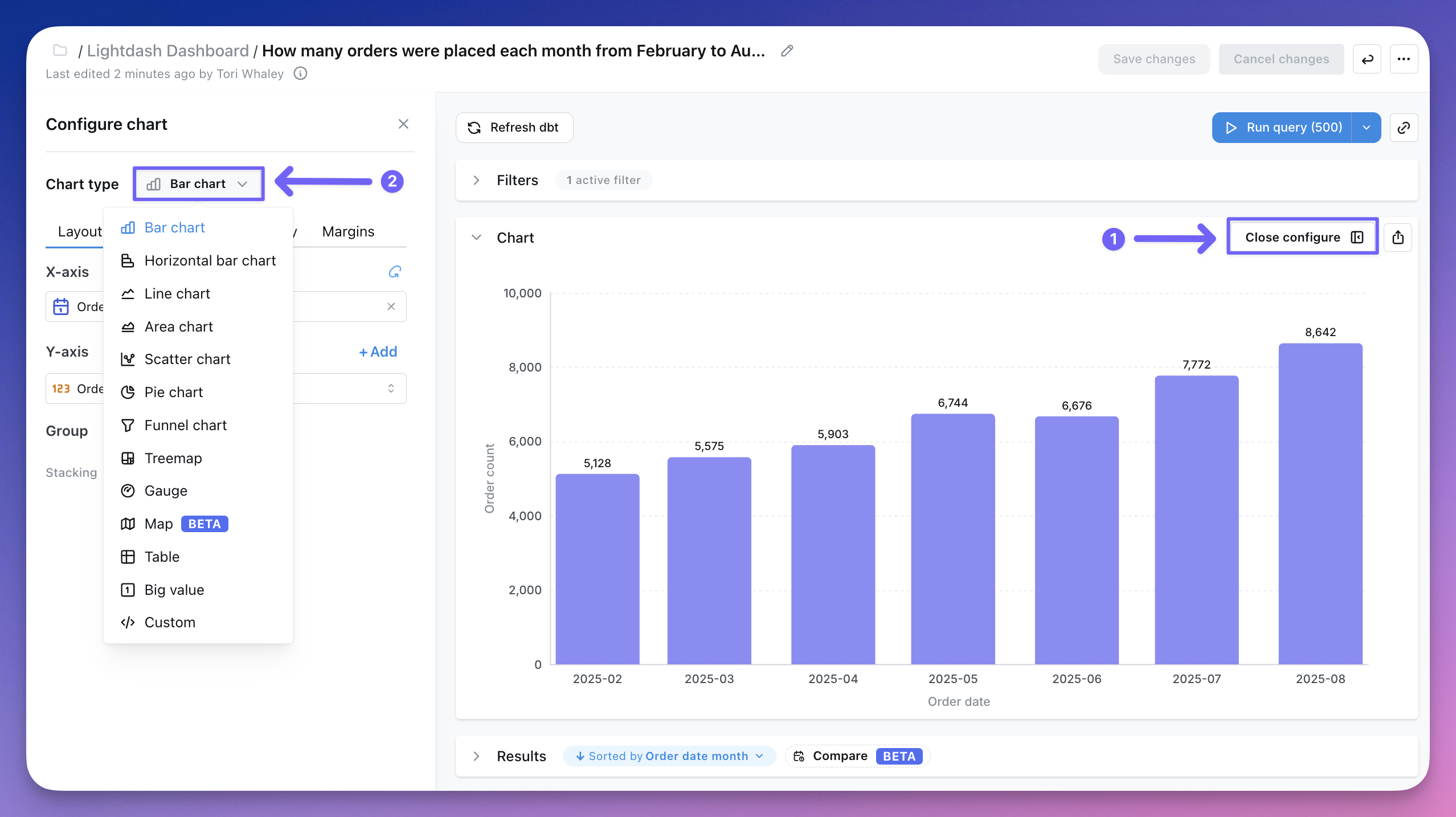 Results tables can be useful for finding specific numbers or checking out your data, but it’s usually easier to see trends and make sense of your data using charts.