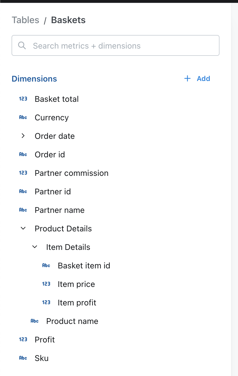 To do this, you need to set up group_details in the model’s configuration. Then, you can use these groups to organize metrics and dimensions. You can create nested groups up to 3 levels.