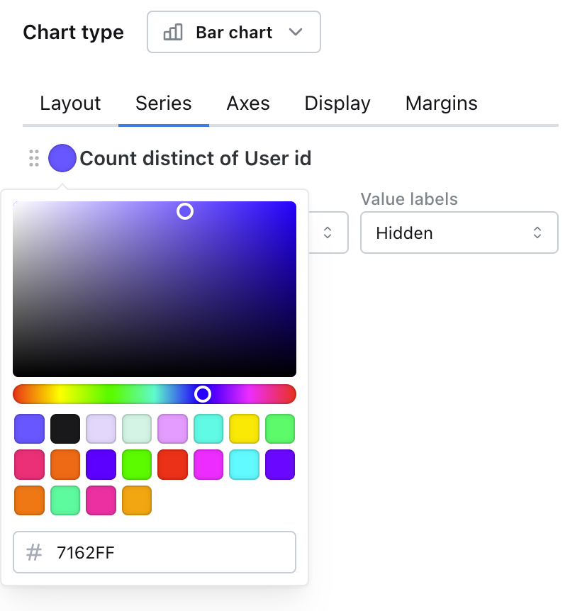 The next time you build a chart, it will default to using these colors for the series, unless you override them in the chart config.